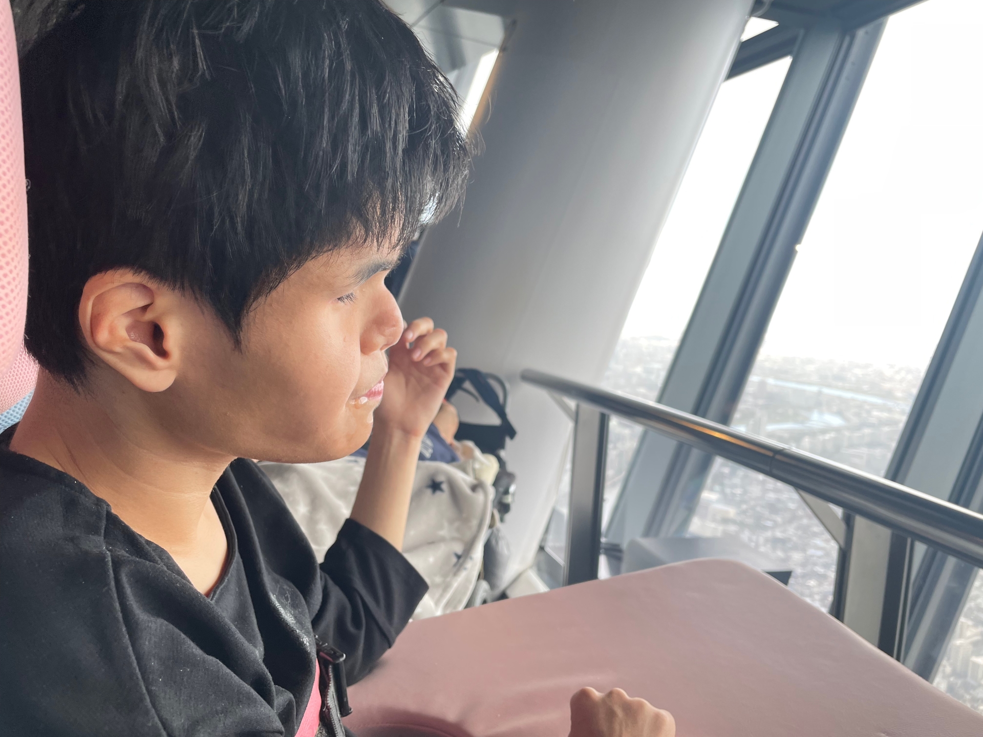 今日は良いお天気で、上からの景色は絶景!!高さに驚いたり、景色にじっと見入ったり、ライフゆうで見るお顔とは全然違う表情がみられました(^^)/