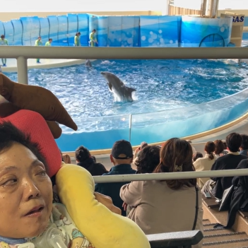 一休みしたら、イルカショーを見に行きました!!イルカのジャンプ!すごかった!!たのしかった~