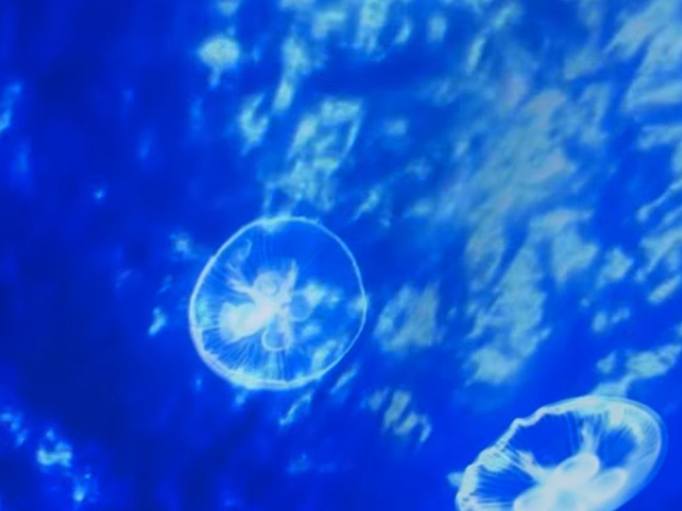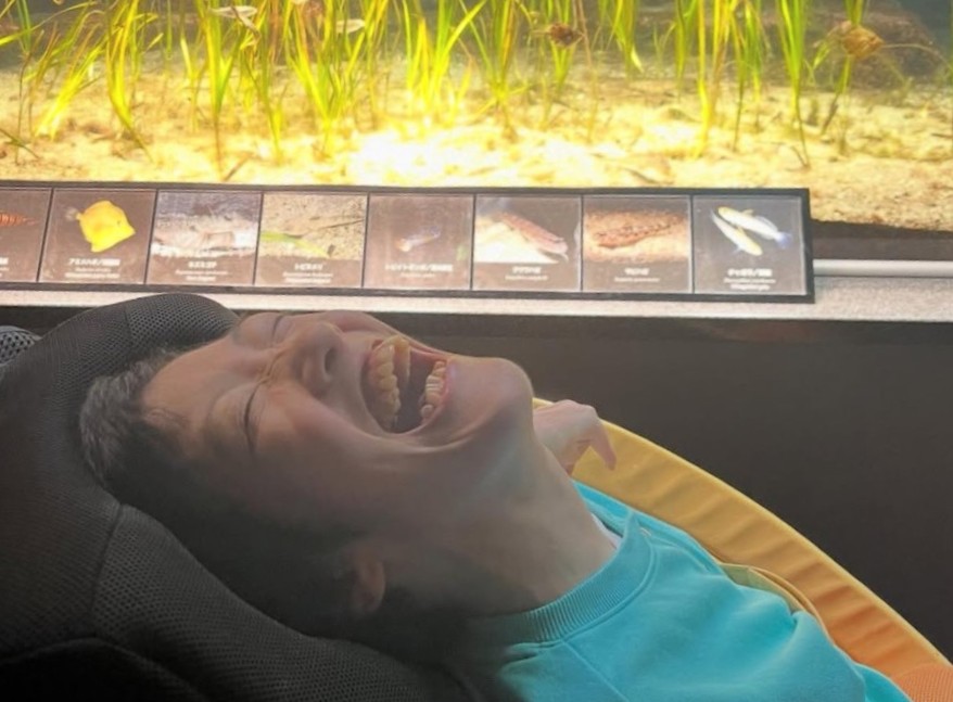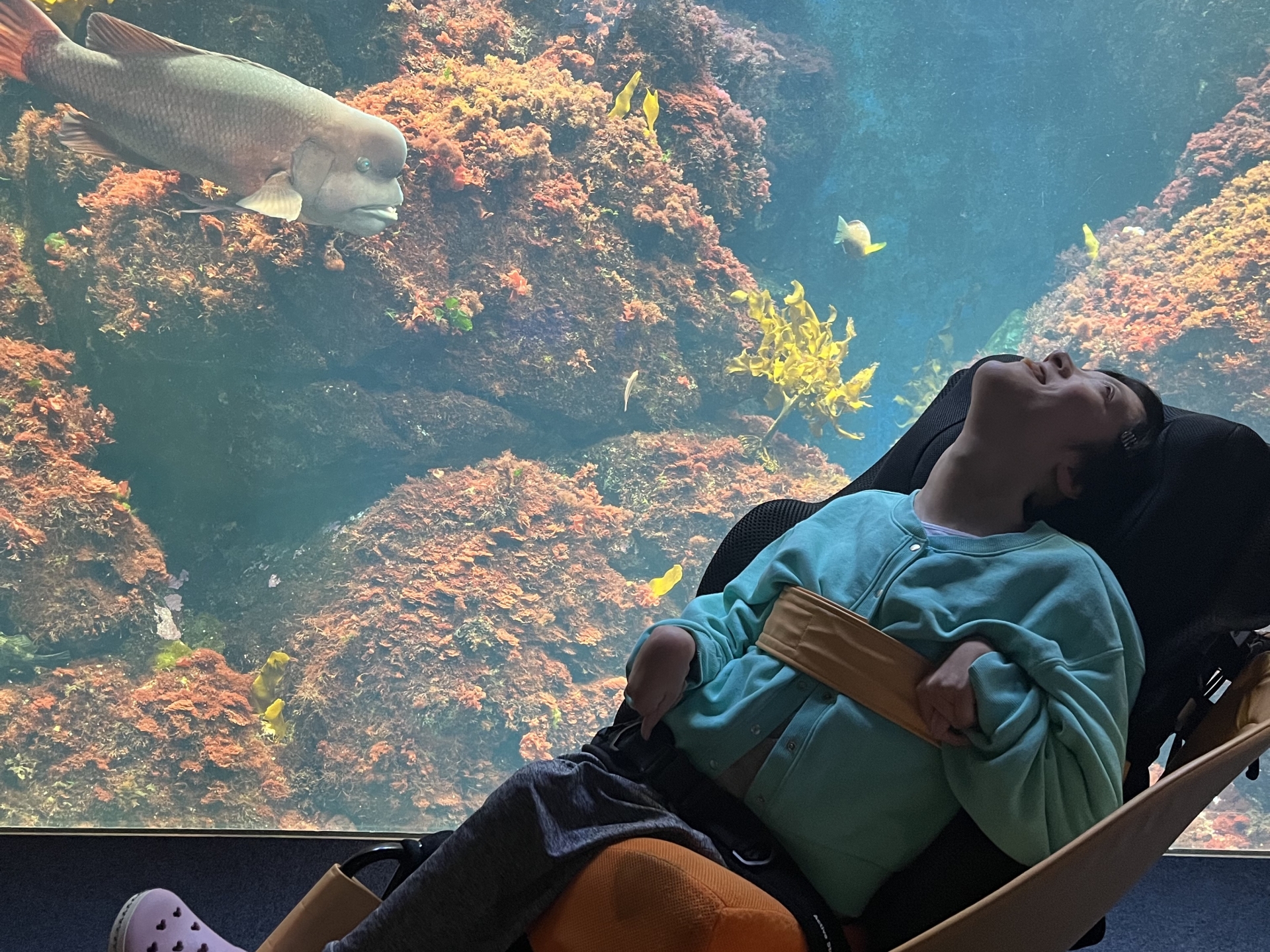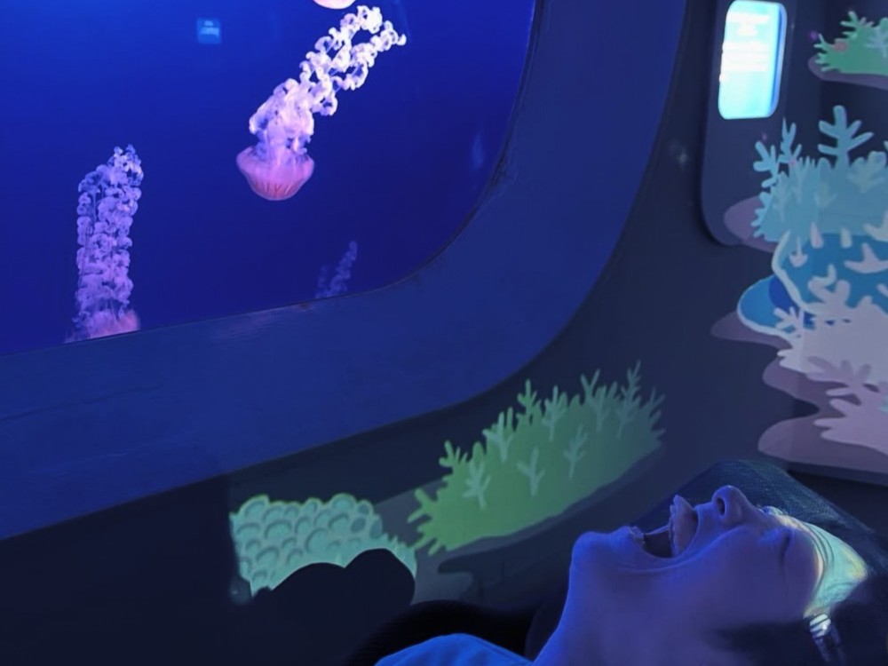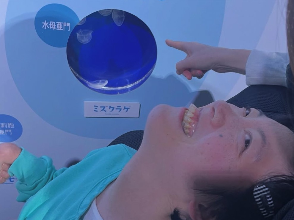 クラゲ水槽のプロジェクションマッピングや、ドーム型の水槽です!車いすを倒した状態でも見やすくってすごく良かったです♡