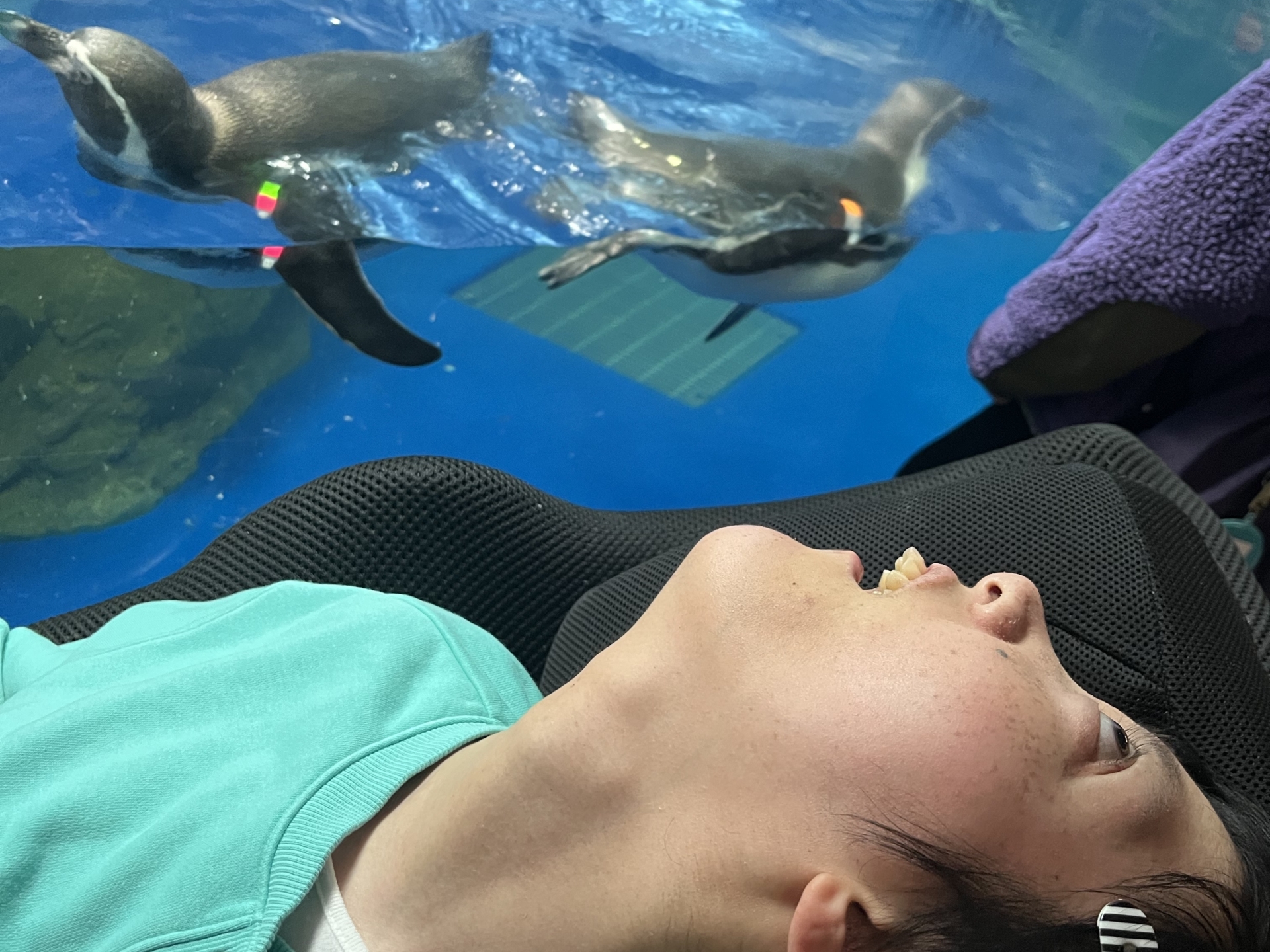水族館に入ると、サービス精神旺盛なペンギンが、スイスイ泳いできてお出迎え♡