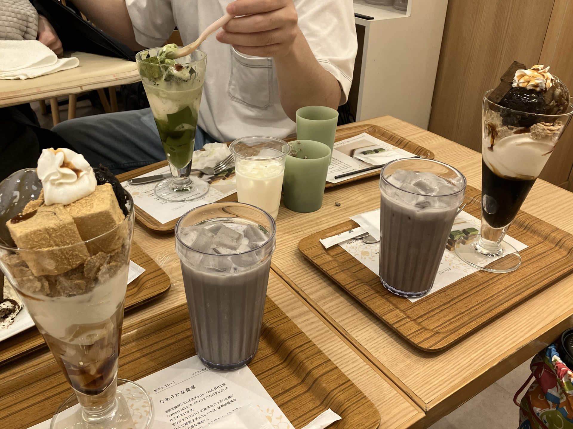 今日のお昼は、大好きなスウィーツで攻めます!パフェとロールケーキだ(^O^)
