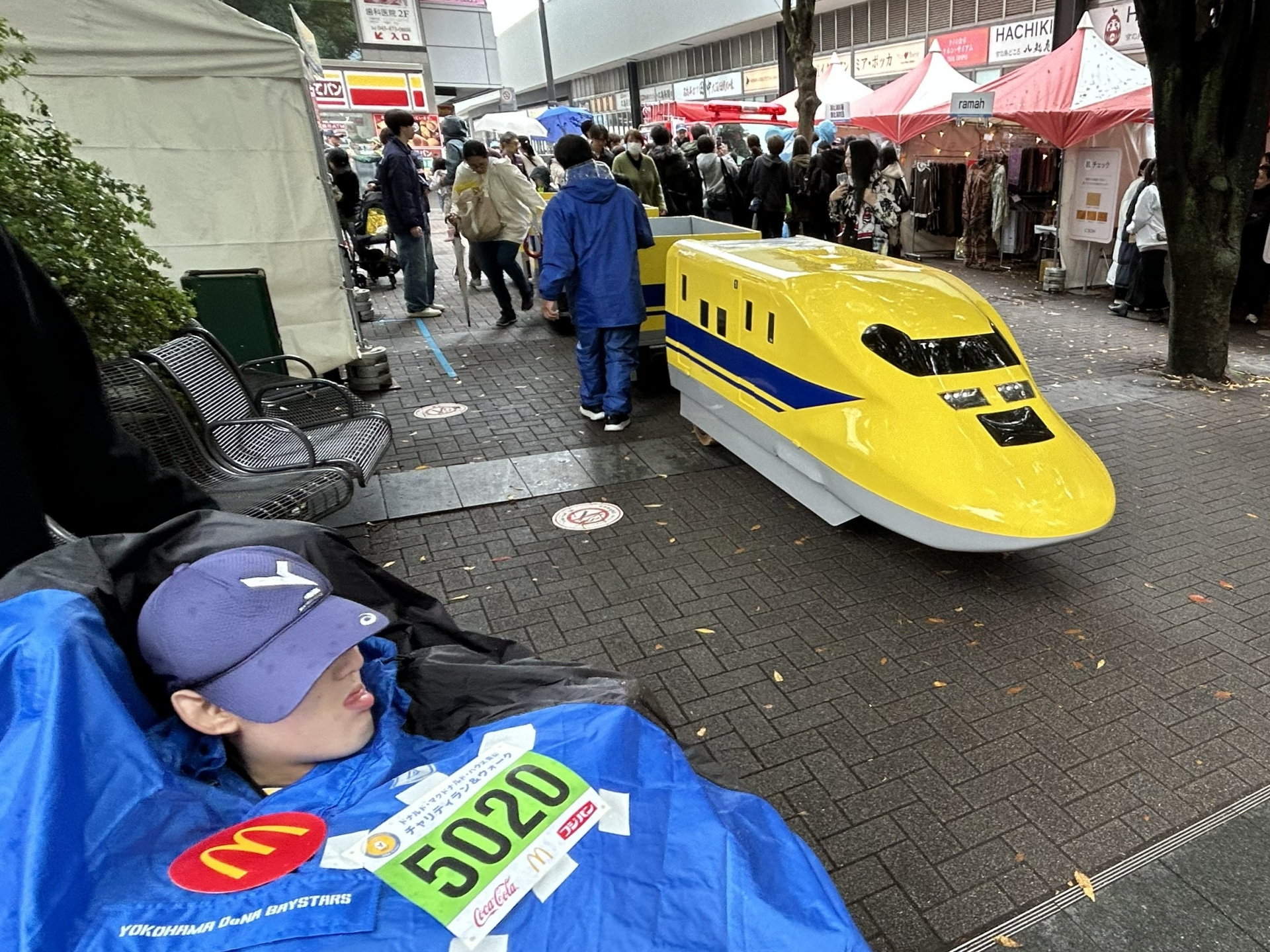 「えっ!?こんな所に新幹線?」ここは新横浜駅前広場です。