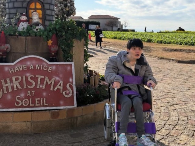 晴天でお散歩日和!クリスマスツリーの前でパシャリ!記念撮影です(^^)/