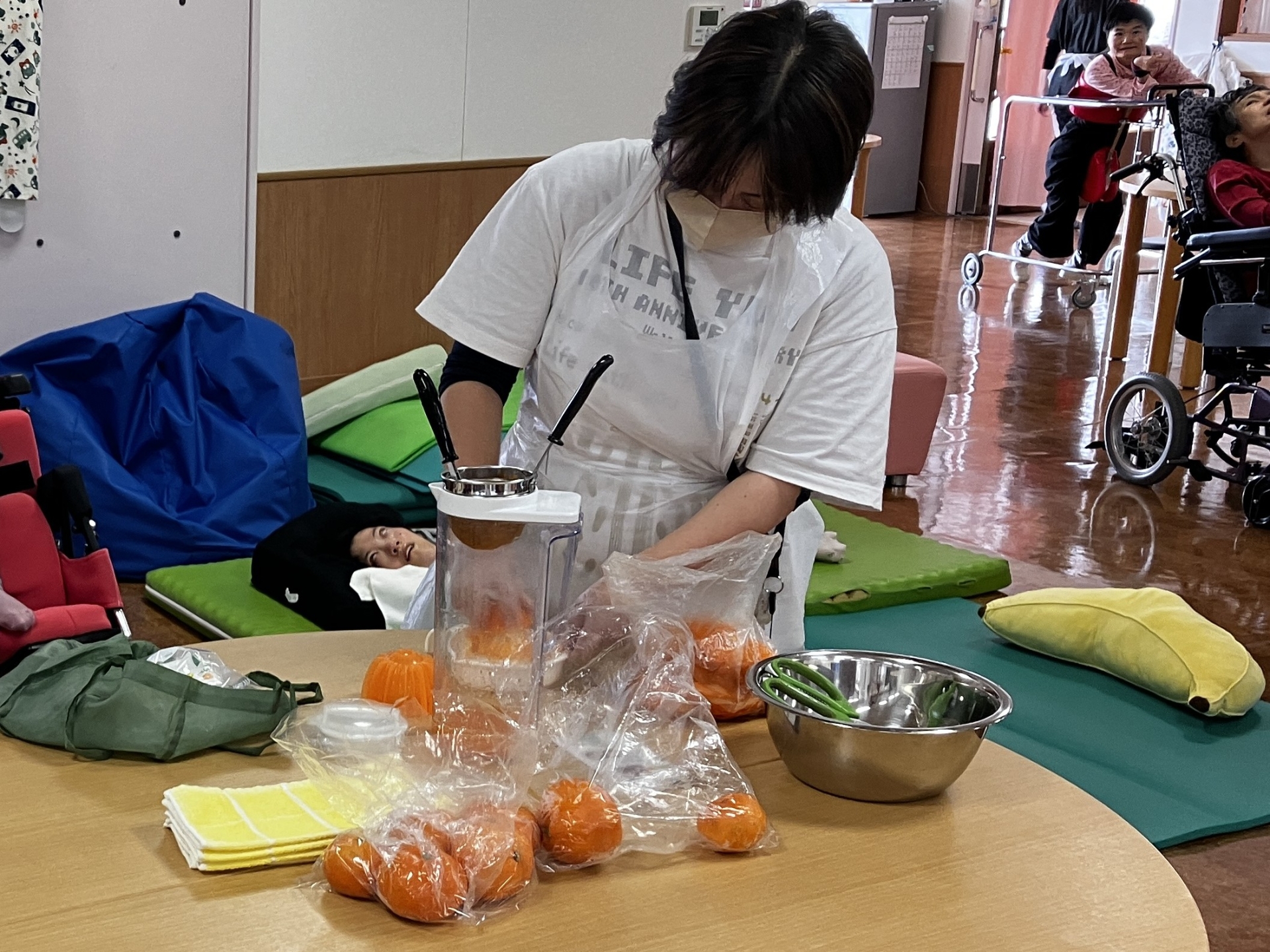 摘んできたみかんは、ライフゆうに戻ってからジュースにしたよ!