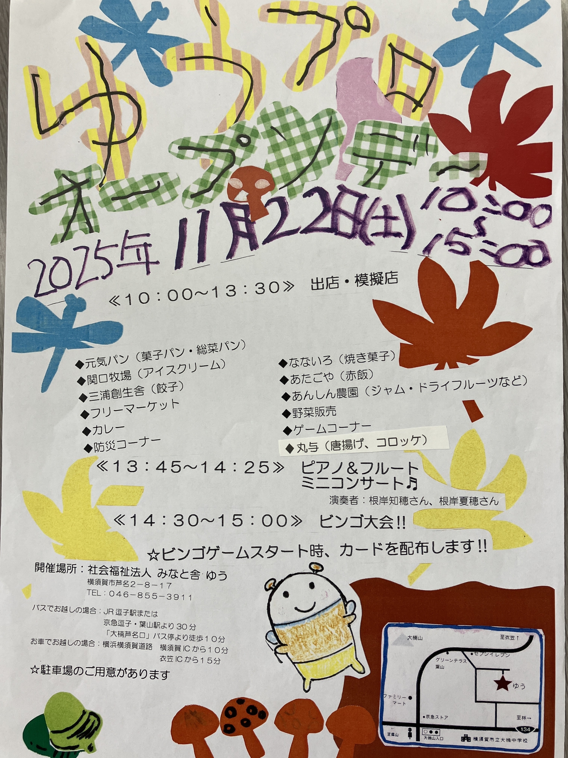 模擬店・出店 10:00~13:30    ピアノ・フルートのミニコンサート 13:45~14:25