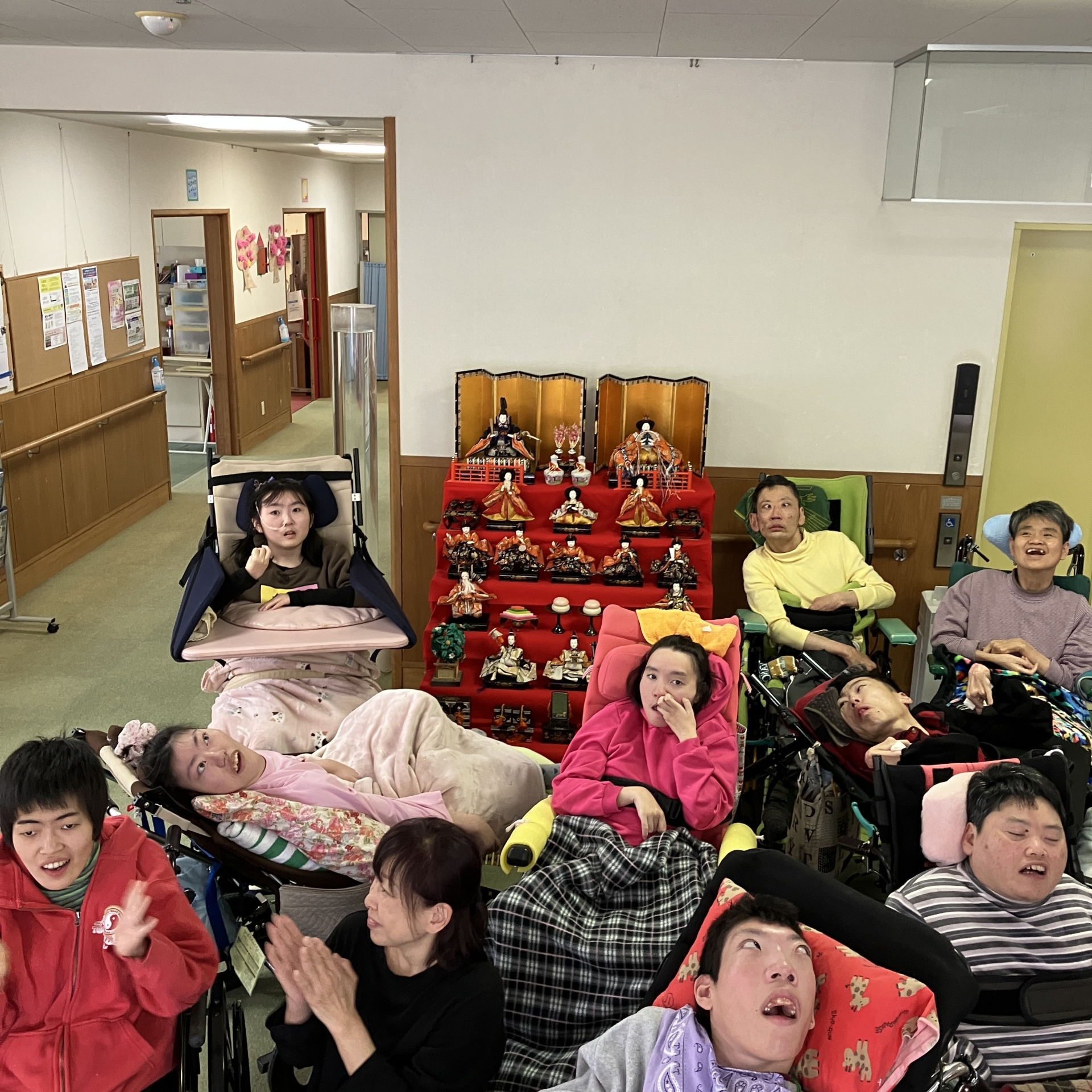 ひな壇飾りの前で、記念写真撮影!